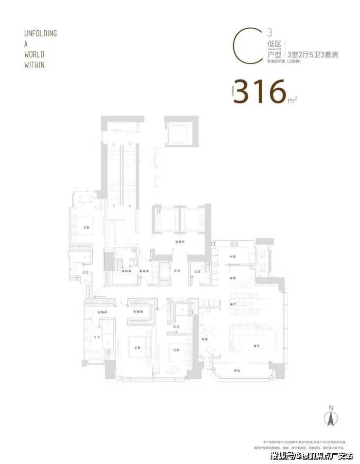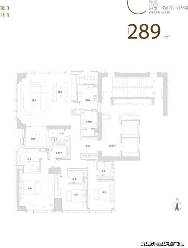 比如285㎡户型两个次卧尺度分别达4.3米*3.87米,3.8米*5.14米,并标配独立卫浴和收纳。