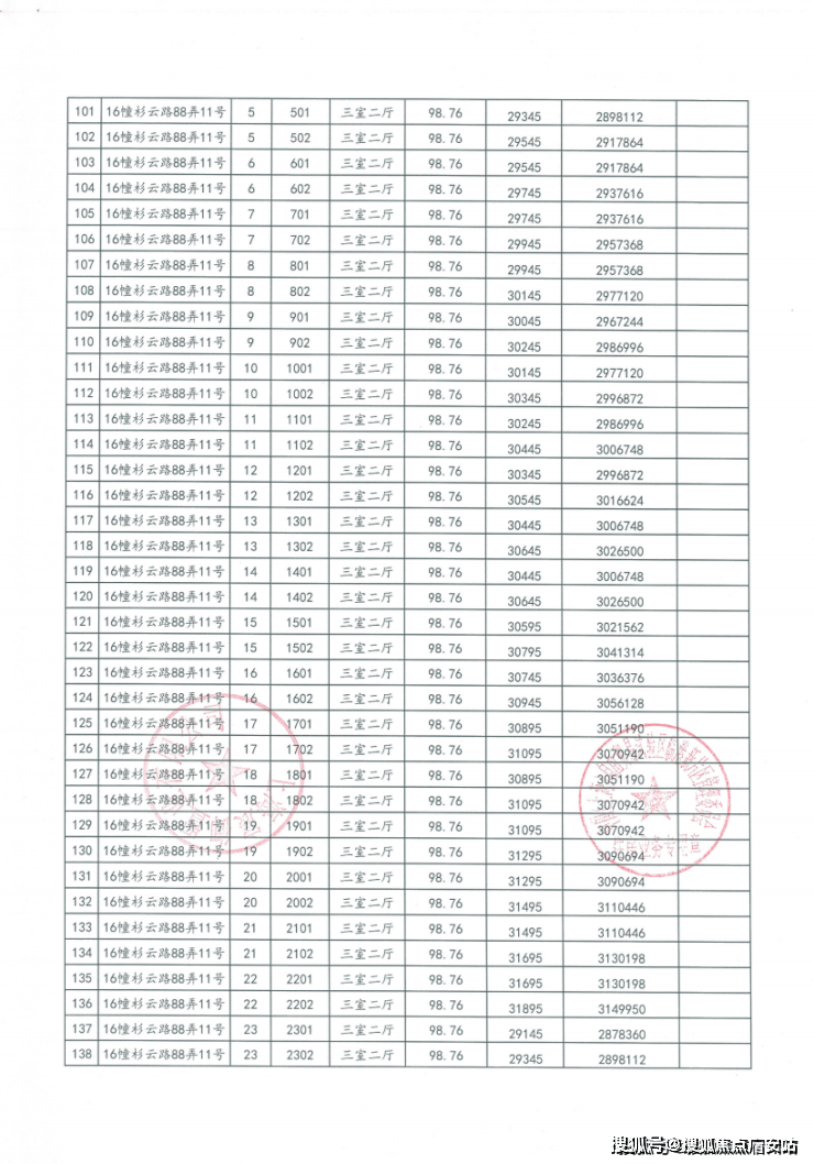 一房一价表