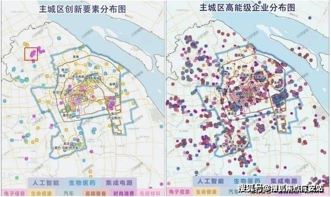 如下图所示,嘉定北的创新要素(高校+科研院所)在五个新城中是非常密集的。