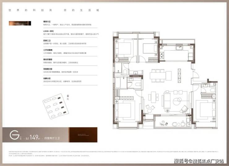 该户型最大亮点在于 “3 卫” 配置,区别于市面上超98% 的150㎡四房两卫户型,可打造双南套房,充分保障家人的尊贵感与私密性。