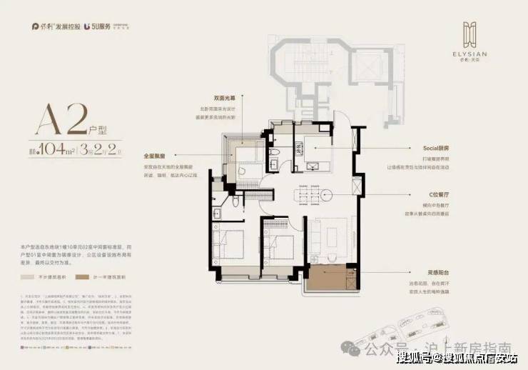 主力户型:104-135㎡三房至四房,少量170㎡以上大平层 。