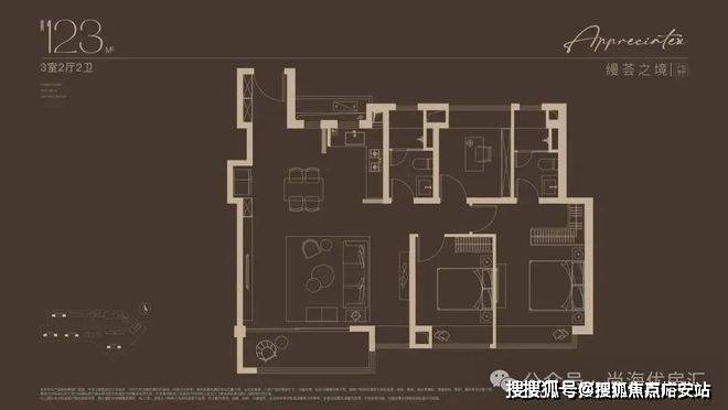 建面约123㎡3房户型,户型方正,三口之家的改善进阶之选!巧妙预留X空间,既可成为客厅空间的延伸,也可独立成室,实现更多功能想象。约12.5米南向面宽,搭配270°宽景阳台,窗外美景一览无余。