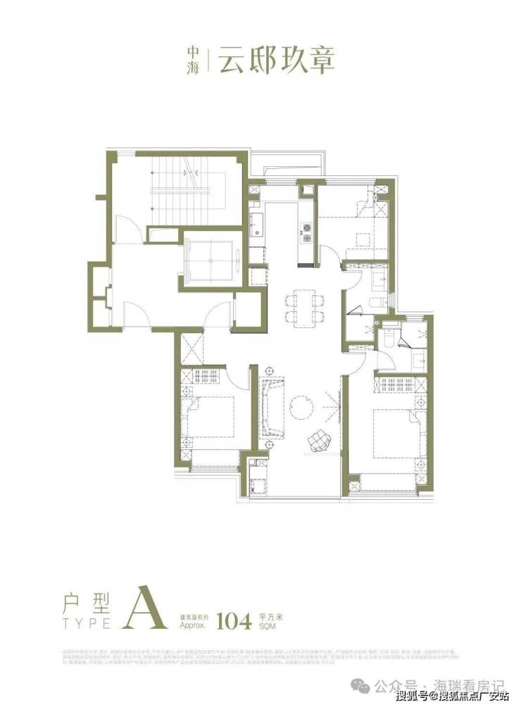 104㎡(三房两厅两卫,入门改善):总价 900–980 万,飞机户型,南北通透