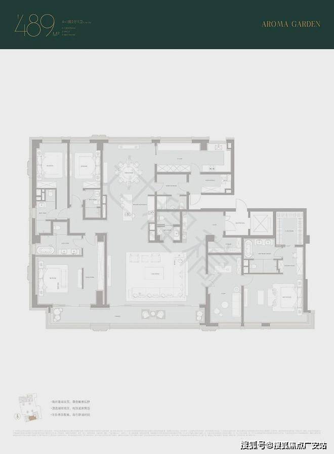 以建面约489㎡户型,实际使用面积就比同类项目多出约25㎡(相当于一间主卧的尺度)。
