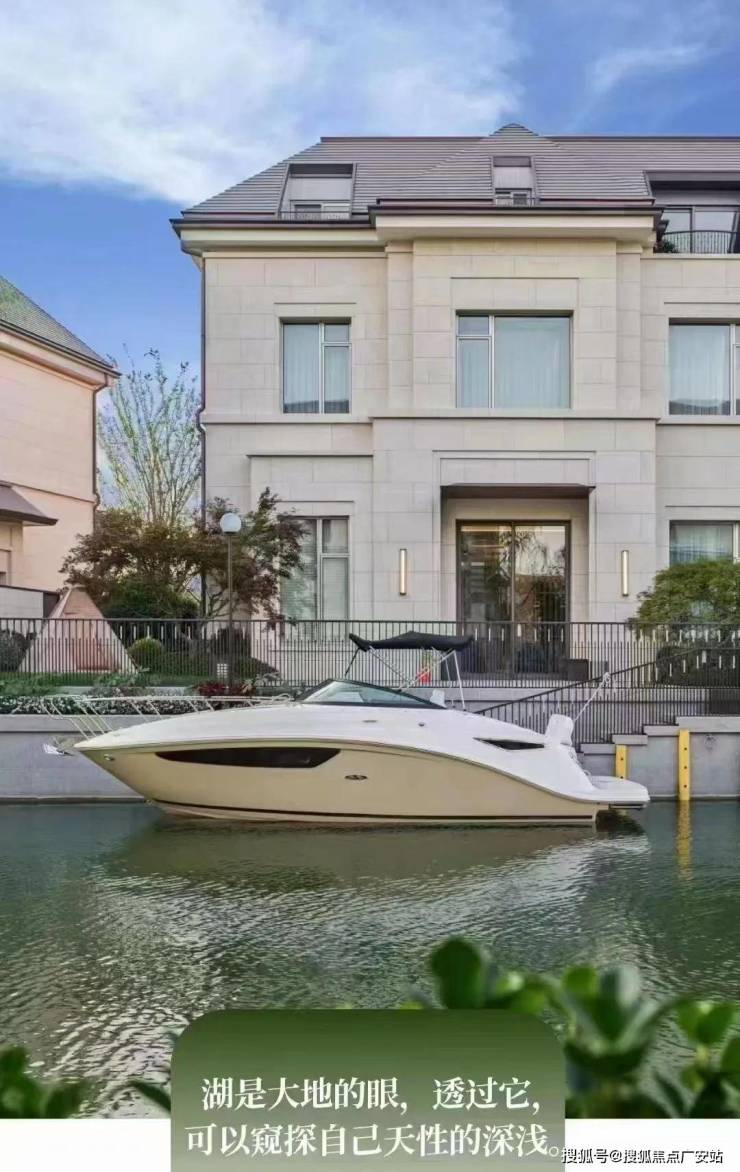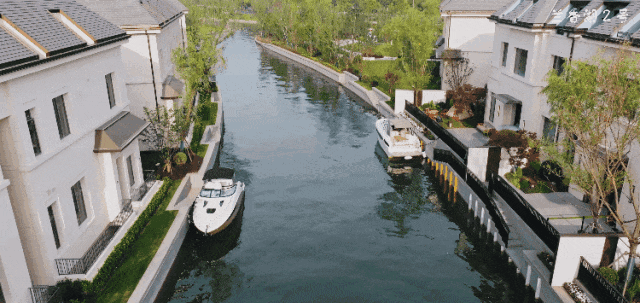 每一排别墅前都有一条渠道,引入水系,可!以!停!游!艇!