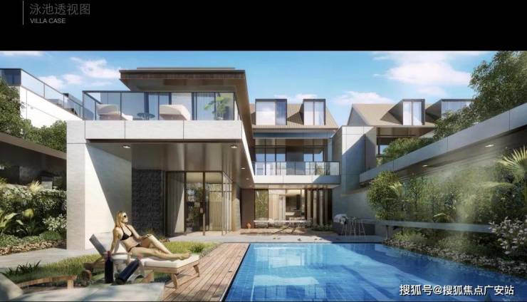 泳池里两旁的庭院,可以与亲朋好友相聚。