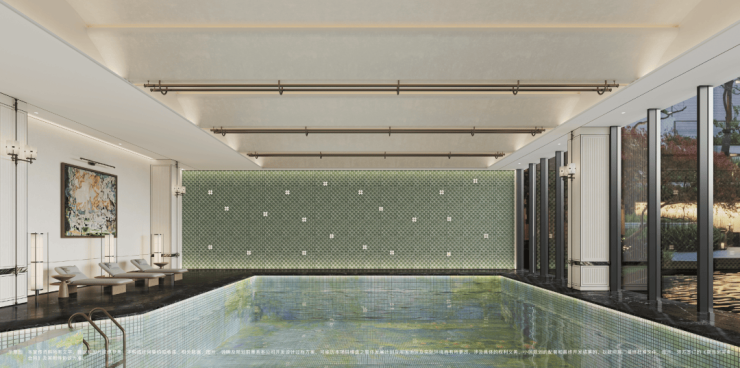 比如,项目打造的约2500㎡下沉式会所,预计包含等泳池、健身房、瑜伽室、水吧台、私宴厅等功能,满足业主全龄多元需求。