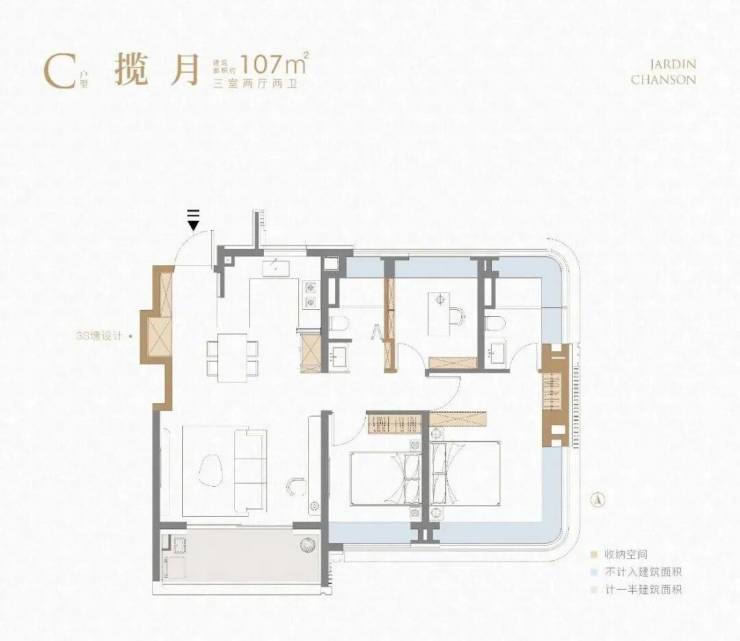 不夸张的讲,这个建面约107㎡刷新了我对百平三房的新认知,据悉该户型或将申请专利,我认为实至名归!