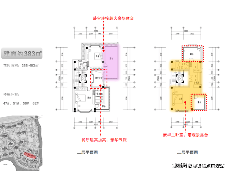建面约383㎡双拼别墅,花园面积266-403㎡