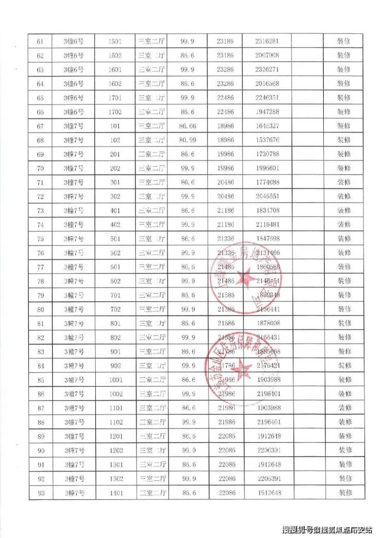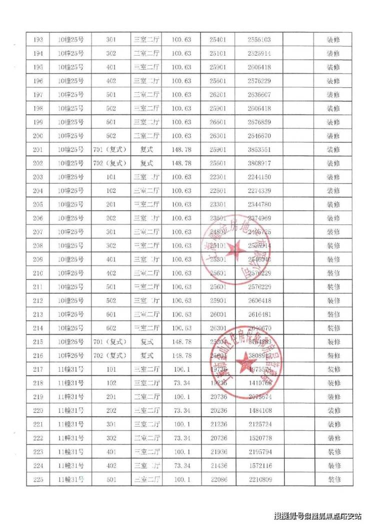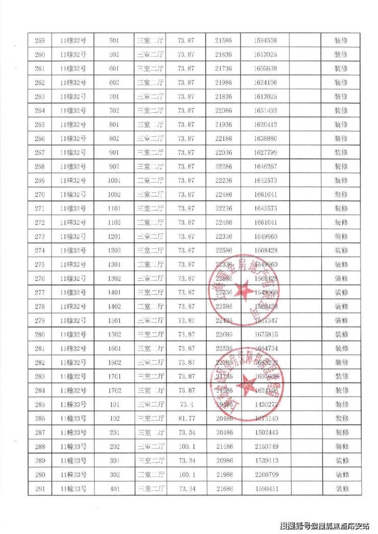 项目一房一价表