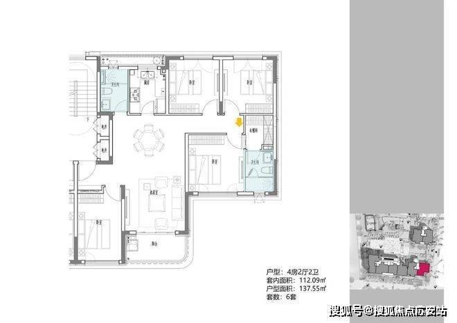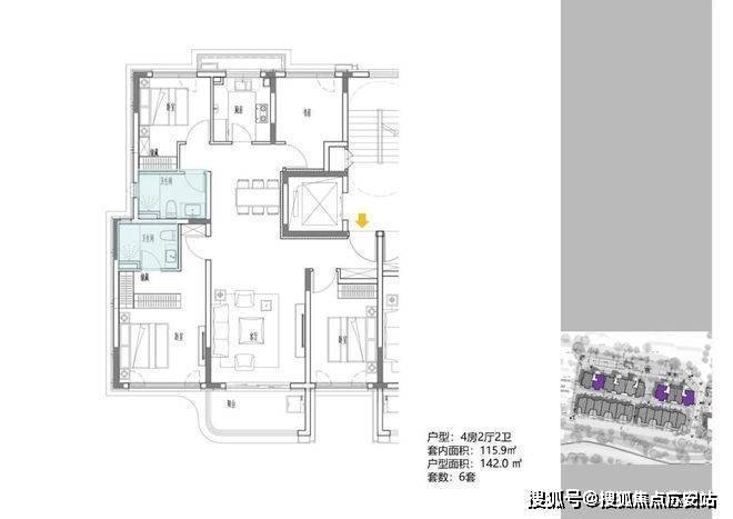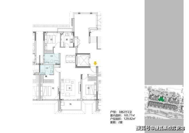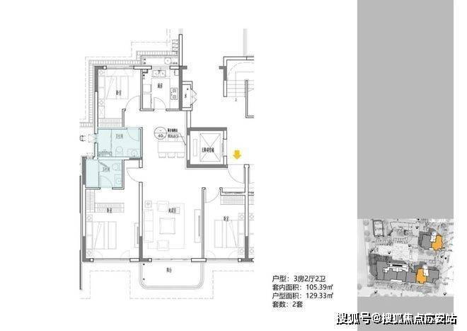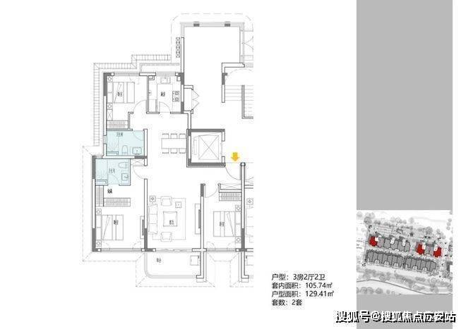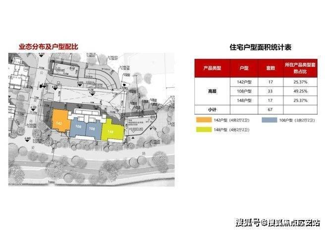 2地块容积率2.94,只有一栋小高层,共67套房源,产品建面约108-148㎡.