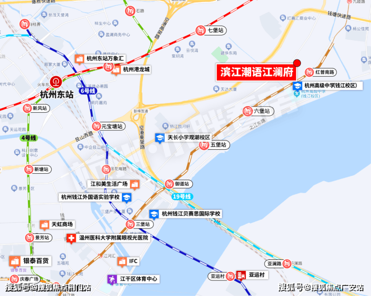 再看潮语江澜自身配套,项目与地铁9号线红普南路站相距仅约200米,真正实现“出门即地铁”,咫尺江河汇,加上钱塘快速路、之江东路隧道等,快速联通全城。