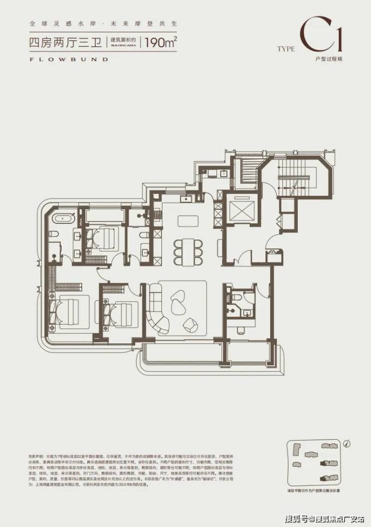改善家庭的理想之选约190㎡四居,东边套主打270° 全景视野,客餐厅采用弧形玻璃幕墙环绕,东侧可远眺黄浦江景,北侧可俯瞰社区下沉式庭院,景观视野堪称极致;