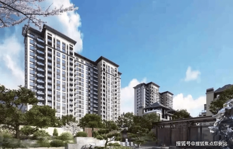 从产品形态上看,建邦国宸府打造的是金山新城极为稀缺的墅居产品,由高层+叠墅组成,建筑风格为现代中式滨海风格。其透露出的中式意境和构图美学我们可以从景观绿化一窥端倪: