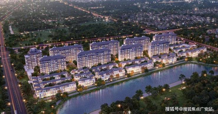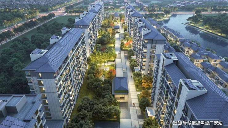 项目容积率仅约1.5,由3层联排别墅+10层墅境平层组成,整体环河排布。
