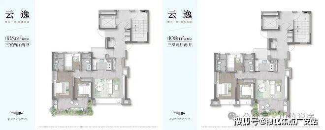 •108㎡ 云逸 | 三室两厅两卫 奇数层:使用率约95%偶数层:使用率约95%