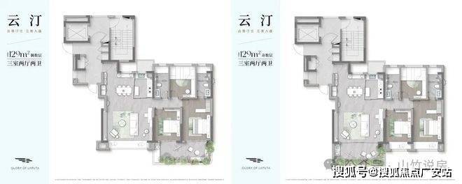 129㎡ 云汀 | 三室两厅两卫 奇数层:使用率约94% 偶数层:使用率约95%