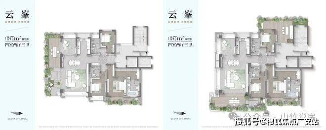 •187㎡ 云峯 | 四室两厅三卫 奇数层:使用率约123% 偶数层:使用率约111%