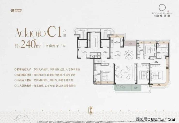 建筑面积约240㎡公园盛幕大宅,10层臻稀小高层,户型空间获得感更高,亲地舒适性更高,近揽公园与繁华天际,上海心中的恒景化作生活的慢调旋律。