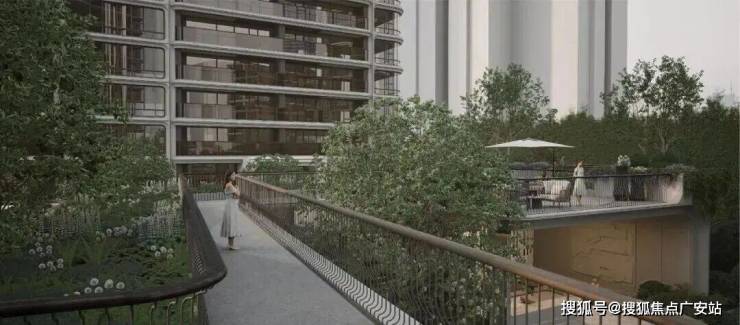 社区内部的立体花园,与城市中央绿地形成“城市绿脉+社区绿芯”的呼应,实现“出则融入繁华,入则沉浸静谧”的从容切换。