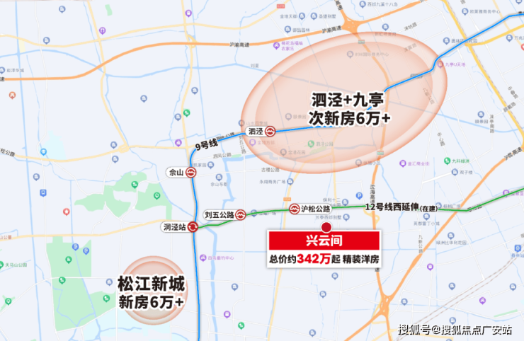 更重要的是,兴云间距离12号线西延伸(在建)沪松公路站直线约1.5km。