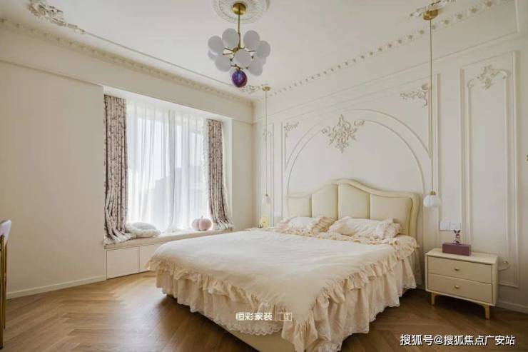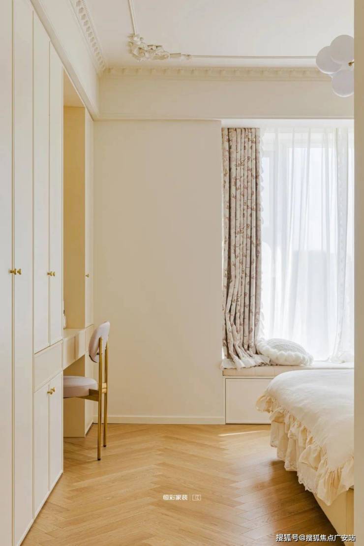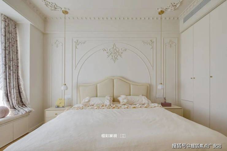 Respect style master bedroom, quiet master bedroom space, equipped with bathroom, bay window, reserved clothing and hat space, elegant and calm wide environment private