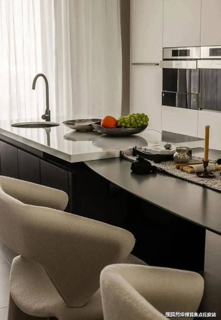 顺着动线一路前行,角落处的餐吧台优雅地展开着,极具仪式感的就餐盛宴,就此开启。