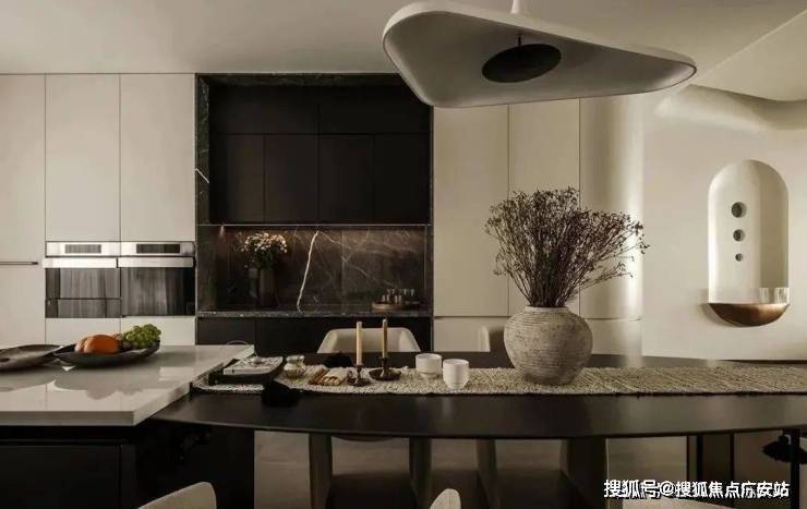 中西分厨的设计巧妙地传达了此处的功能性,并且还保持了整体的美观。