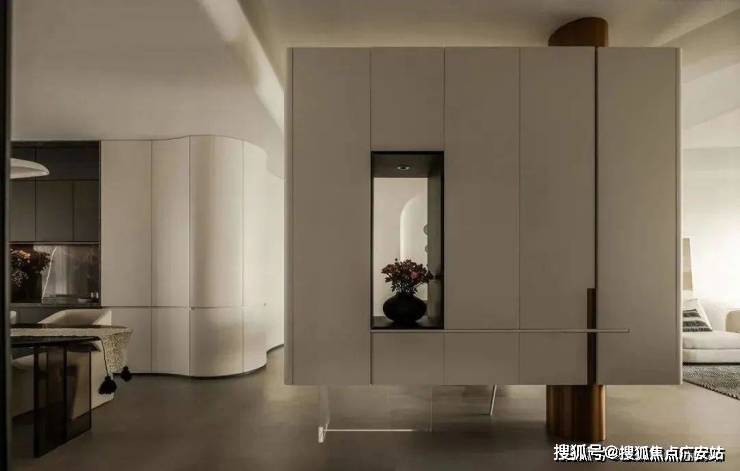 客餐厨严谨的一体化结构之下,经由日光打破,暖灰色的背景更显生活的烟火气了。