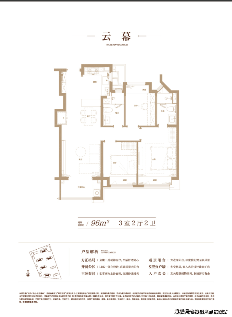 建面约96㎡三房两厅两卫