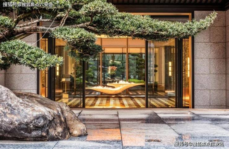 “景观大师”以“新中式园林”为主题,将内庭院墙、山石松色、镜水碧波融入到项目中,营造出东方雅境.