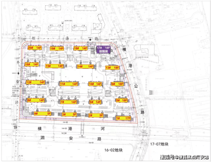 17-07地块:占地面积约2.76万方,总建筑面积约10.96万方,容积率2.5,拟建6栋18F高层住宅、1栋18F保障房、1栋14F酒店、3栋2-3F商业以及若干配套用房!