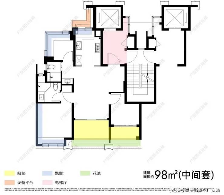 大致计算,98㎡双阳台+花池,可多享约7.8㎡,相当于送了约52万;108㎡三阳台+花池,可多享约12.3㎡,即约82万!