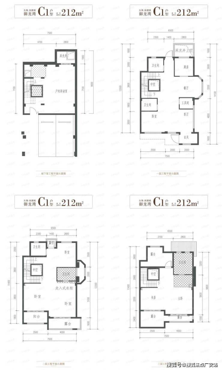 地下室:5.4米挑高,可自由分割为影音室、酒窖、健身房、保姆房等,实用面积最高可达500㎡
