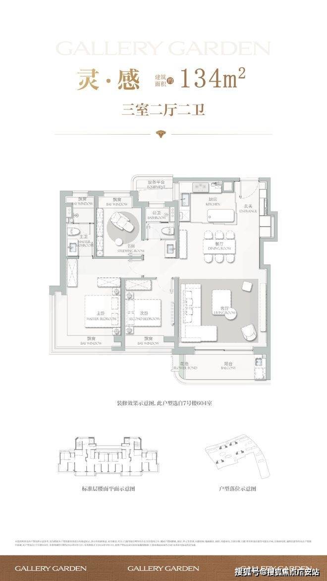 装标,大金的中央空调和地暖,白朗新风。厨房标配博士的三眼灶、油烟机、洗碗机和冰箱,134加配蒸烤一体机;卫生间高仪的洁具和花洒、科勒的龙头。