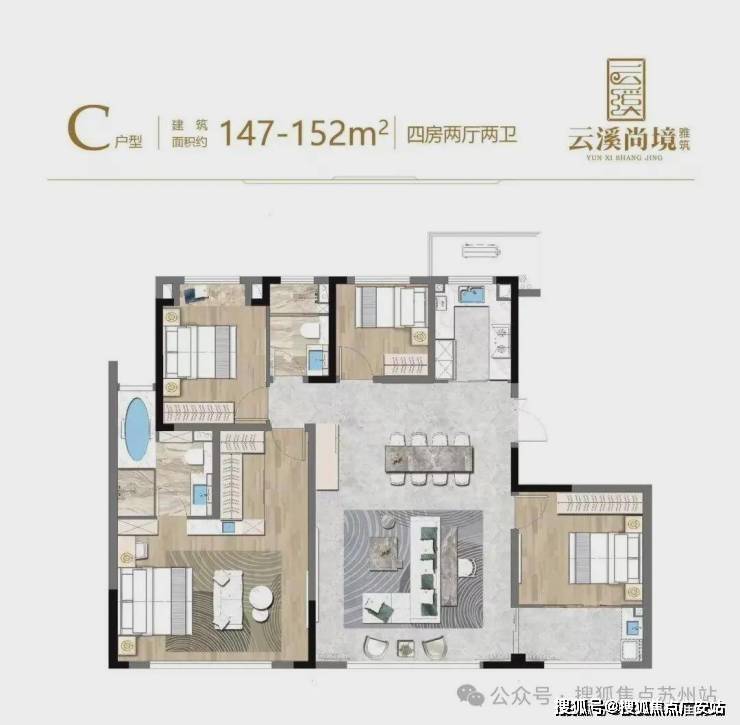 🎈约147㎡王炸户型——4房2厅2位,近14.5米大面宽满足生活大师对日常的一切想象