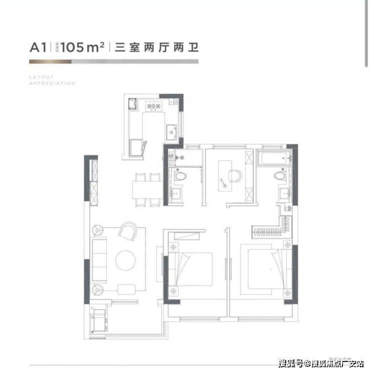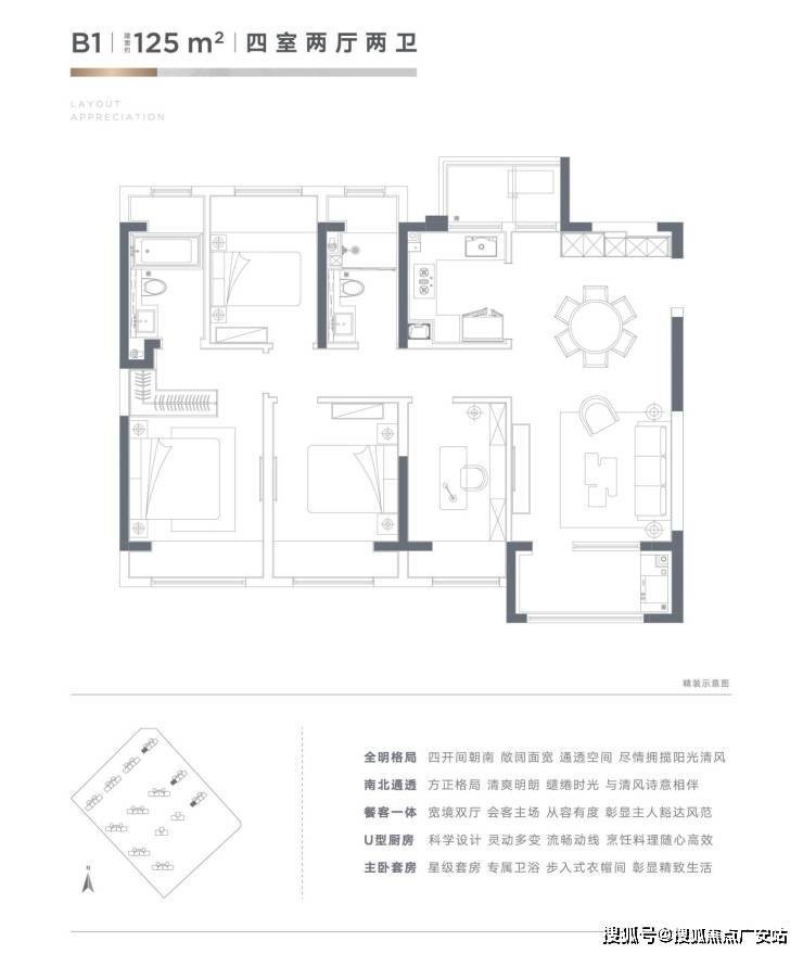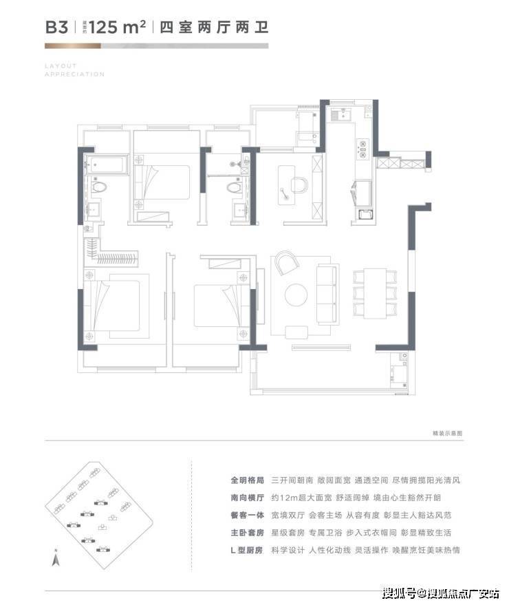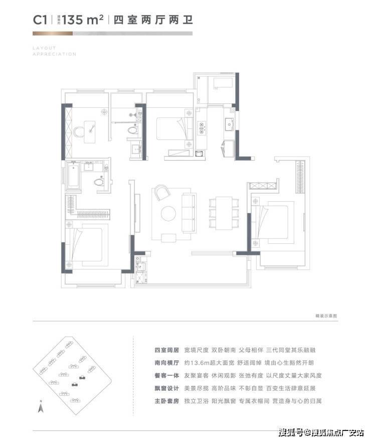户型:主力户型为105㎡三房、125-135㎡四房及165-220㎡改善型户型,得房率74%-85%