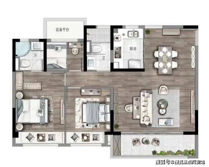 这样的布局,常见于约140㎡甚至是以上的产品,像这样以更小的面积获得大平层级的改善体验,全市罕见,性价比堪称一绝;