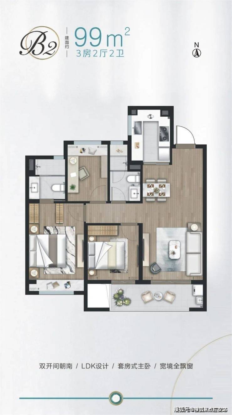 建面约99㎡3房,双开间朝南,陆家嘴锦绣澜湾售楼处电话:400-9692-958 双联观景阳台,具有良好的采光、通风。LDK设计,增强互动交流。套房式主卧,步入式衣帽间,兼具舒适性和私密性。