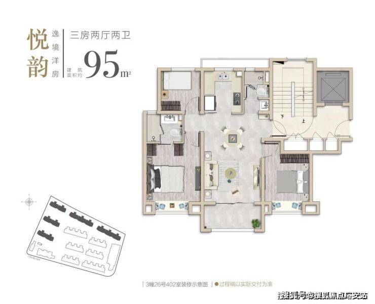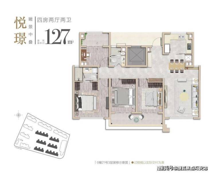 产品类型:主推建面约85–129㎡的洋房与叠墅,涵盖三至四居室户型