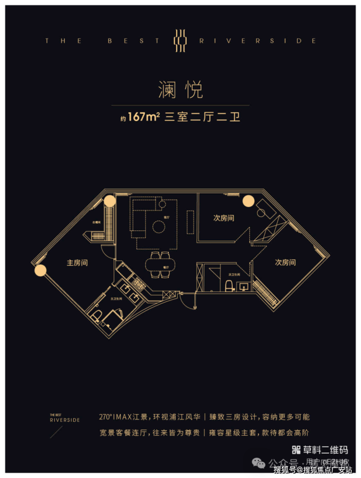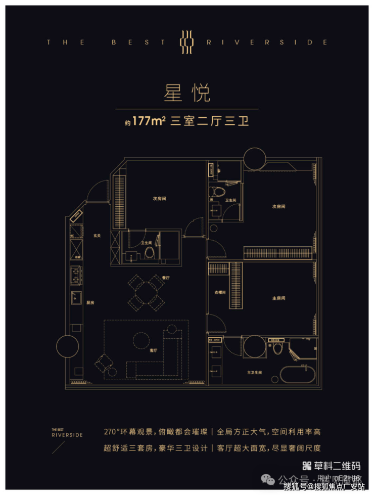125-145㎡三房:三开间朝南,双阳台设计,得房率79%,总价约600-700万,满足改善需求。