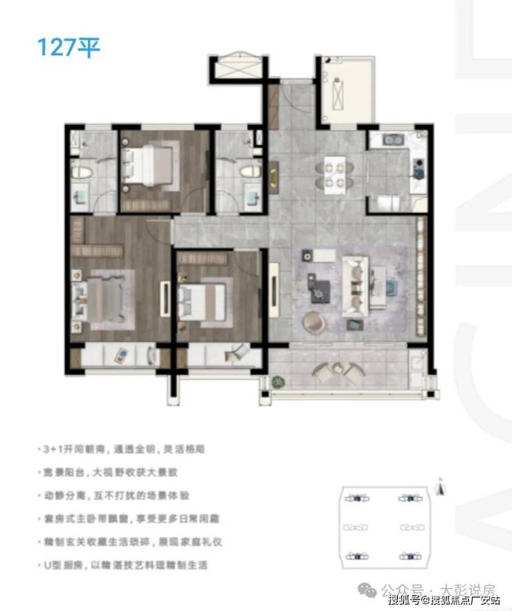 首开产品:建面约105m²,建面约122m²,建面约127m²