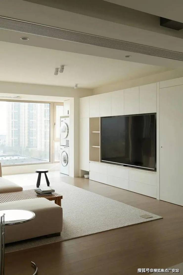 客厅采取了一种集约化的策略,将收纳空间、电视背景墙以及次卧室的入口整合在一起。不仅优化了空间使用,提升了功能效率,而且还赋予了整个区域一种流畅而统一的视觉感受,使每一寸空间都发挥出其最大的价值。