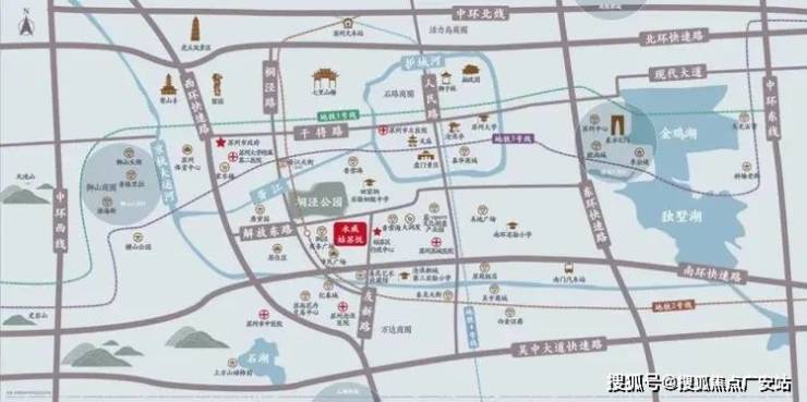 紧邻地铁2号线桐泾公园站,距桐泾公园约百米,项目自带高配临街商业,临近大型醇熟商场大润发(东侧约800m),距龙湖·胥江天街(在建)仅约1.2Km,石路、观前商圈、平江路、新区狮山商圈皆距离本项目5公里范围内。