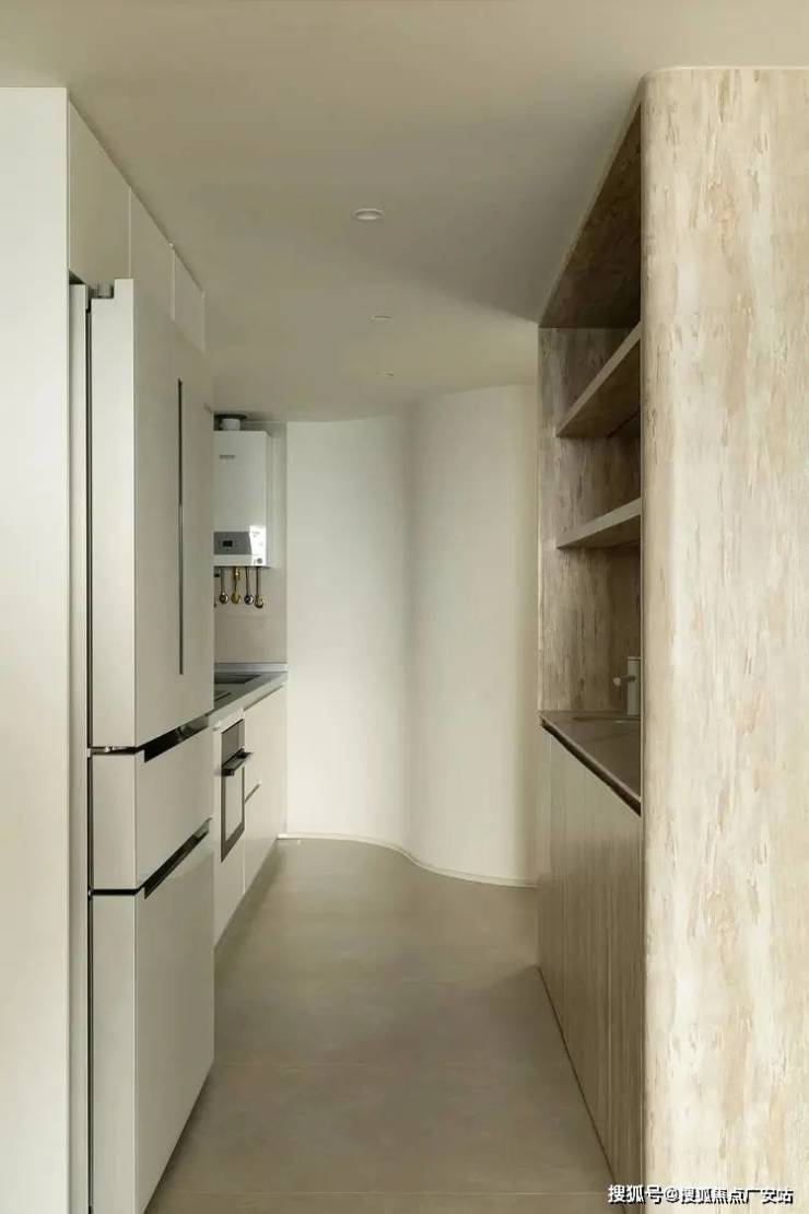 虽然原户型享有南北透风之优势,但在空间比例的配置上略显笼统。因此,我们对原有的不规则厨房空间进行了细致的切割与重组,以打造出既实用又兼具美感的居住环境。