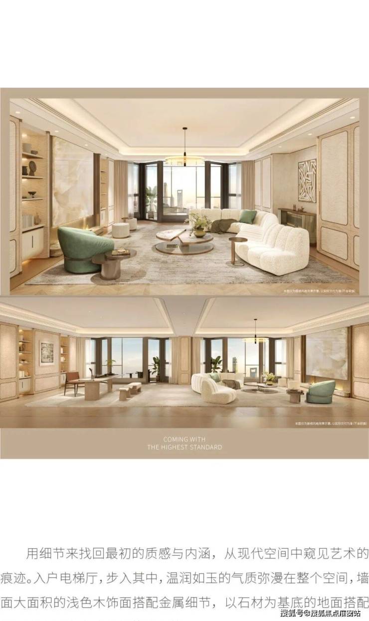 住宅部分全部大平层(复式)设计,单套面积约370-1500㎡,全部精装交付。