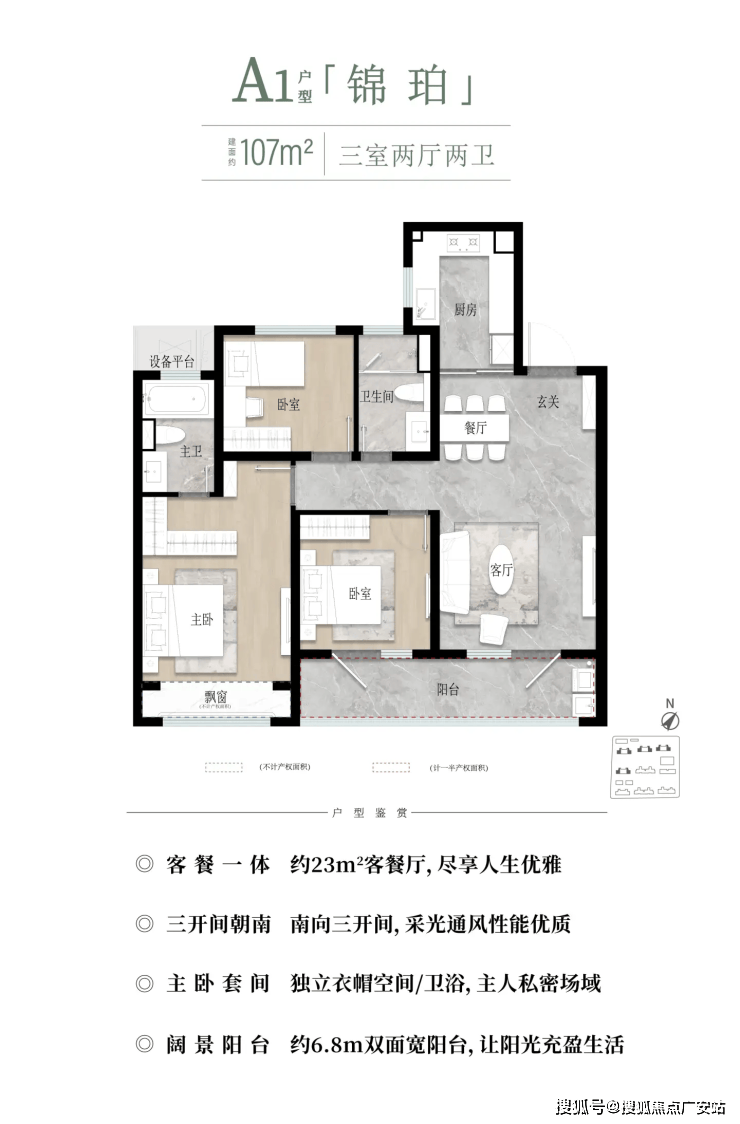 建面约107㎡(三室两厅两卫)