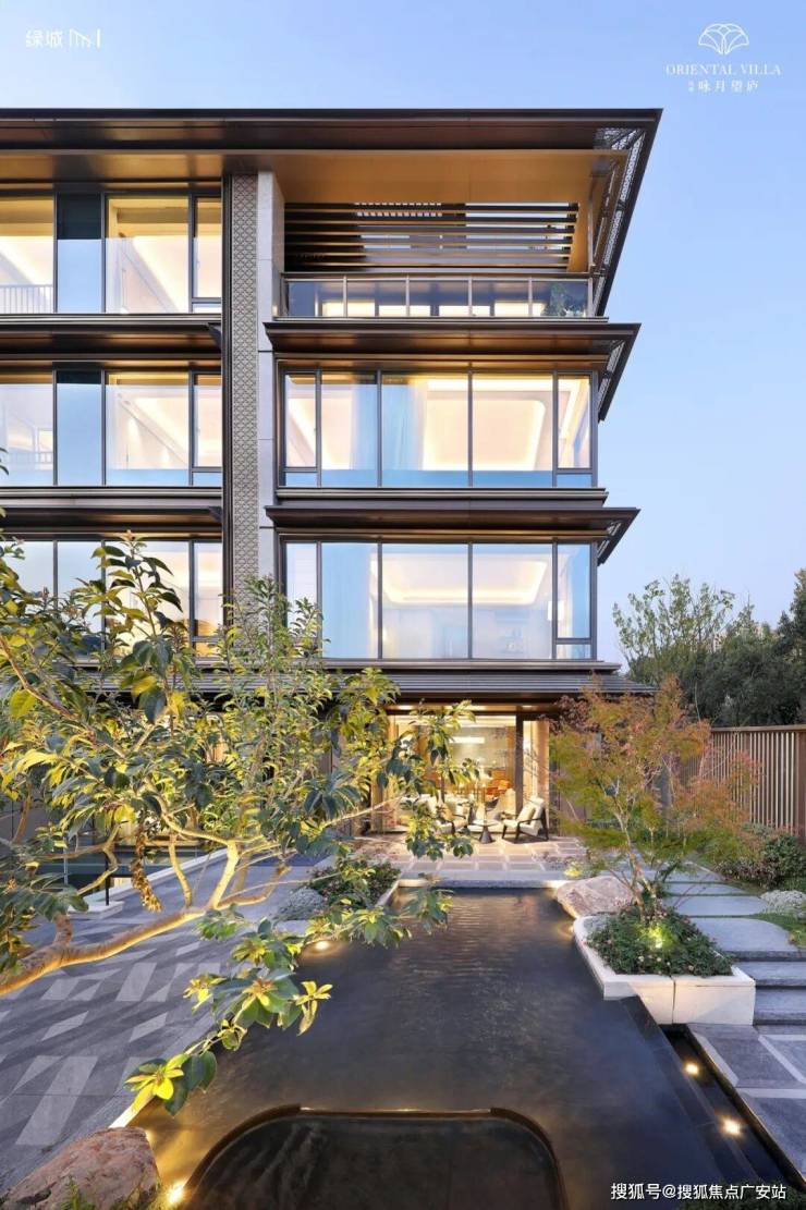 咏月望庐一脉【庐系】TOP级基因,以石材、LOW-E玻璃、金属铝板为主材,整体轮廓由纤长的水平线条统摄,搭配如月光洗过一般的玻璃,将现代建筑的轻盈通透,与宋画中亭台楼阁的澹远意境,映照于现实之中,以“现代形 东方意”的经典建筑美学,回应城市低密栖居信仰。