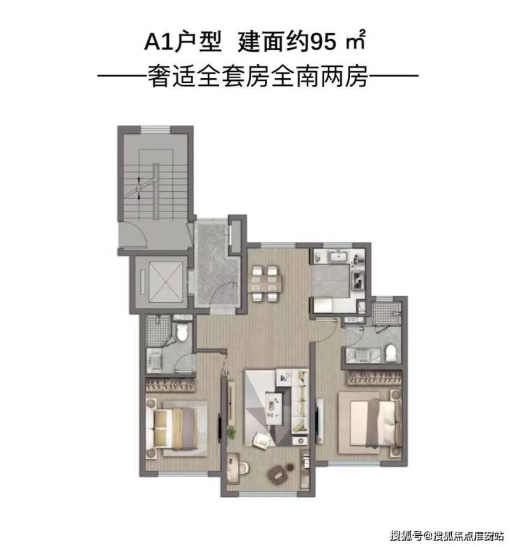 二,不管建面约95㎡2房还是约104㎡3房,都做了“双南套房”。