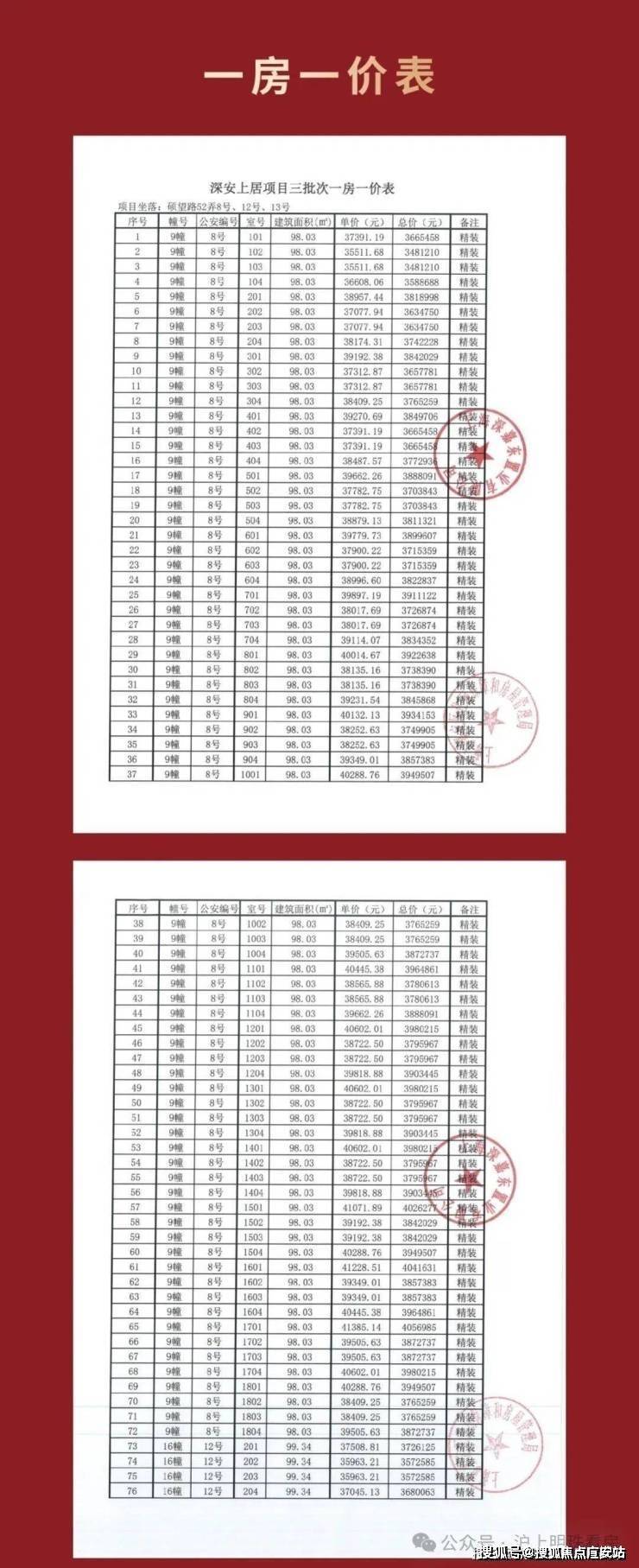 项目一房一价表👇